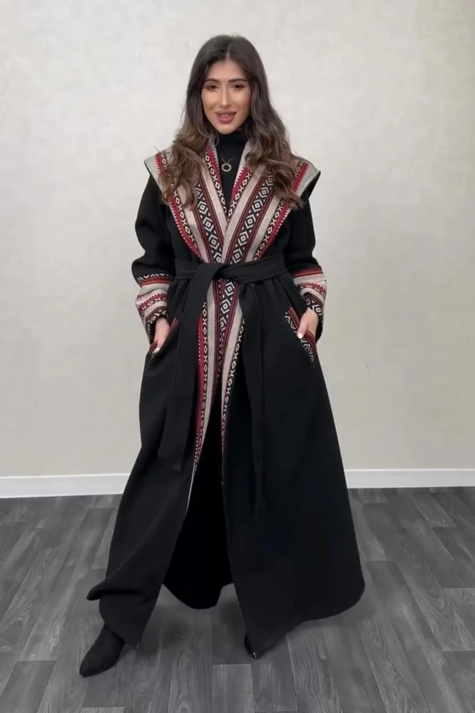 • استمتعي بالدفء والأناقة في هذا البشت الشتوي المصنوع من جوخ عالي الجودة، والمطرز بنقوش السدو التراثية التي تعكس الفخامة العربية. يأتي مع شال أنيق ليمنحك دفئًا مضاعفًا وأناقة متكاملة خلال الأيام الباردة.