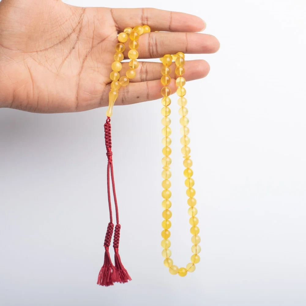 سبحه من الكهرمان الطبيعي المنقوش يدوياً