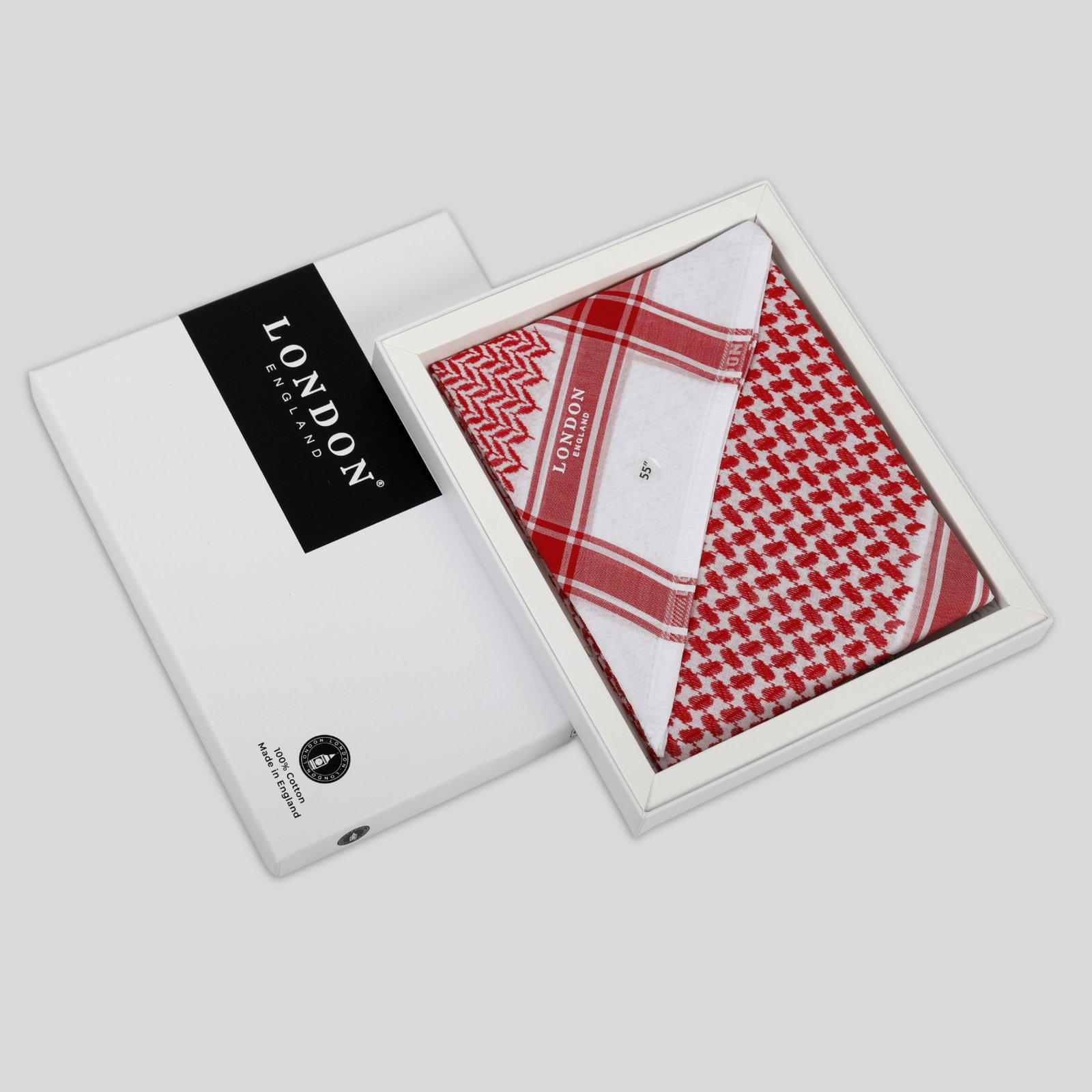 شماغ لندن إنجلترا أحمر كلاسيكي ،مصنوع من 100% قطن نقي ليضمن لك الراحة والنعومة. صُنع بعناية فائقة في إنجلترا لتوفير أعلى درجات الجودة والتميز. يتميز بثبات اللون، نسيج مريح، وحياكة متقنة تعكس الفخامة والتقاليد الأصيلة. خيار مثالي لإطلالة أنيقة.