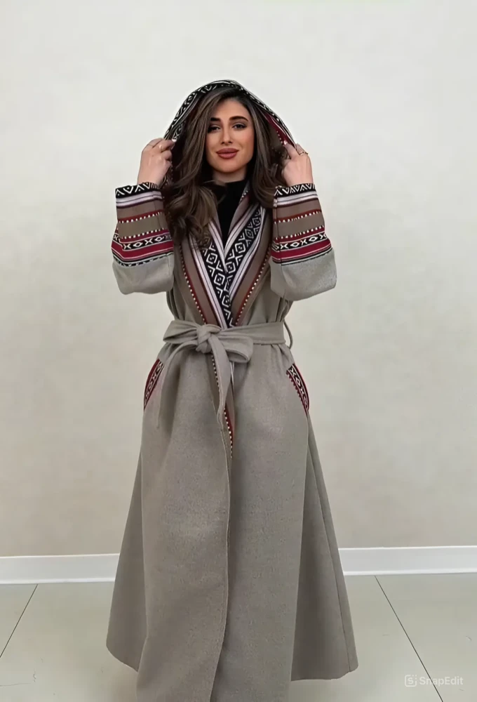• استمتعي بالدفء والأناقة في هذا البشت الشتوي المصنوع من جوخ عالي الجودة، والمطرز بنقوش السدو التراثية التي تعكس الفخامة العربية. يأتي مع شال أنيق ليمنحك دفئًا مضاعفًا وأناقة متكاملة خلال الأيام الباردة.