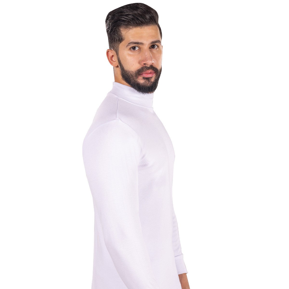 فانلة دروش رجالي كم طويل نصف رقبة أبيض شتوي