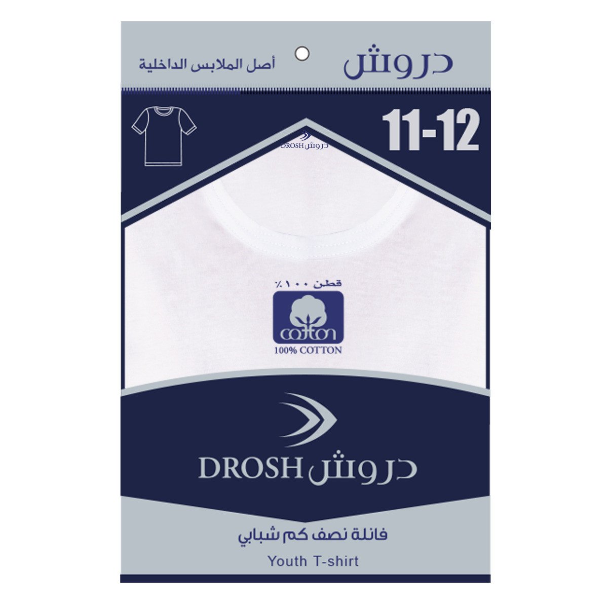 فنيلة دروش الداخلية للرجال بيضاء مصنوعة من قطن منسوج عالي الجودة. الفنيلة تأتي بكم قصير (نصف كم) وبياقة حول الرقبة دائرية من الإيلاستين الناعم. مثالية للبس تحت الثوب أو القميص ومريحة في اللبس المنزلي وعند النوم.