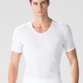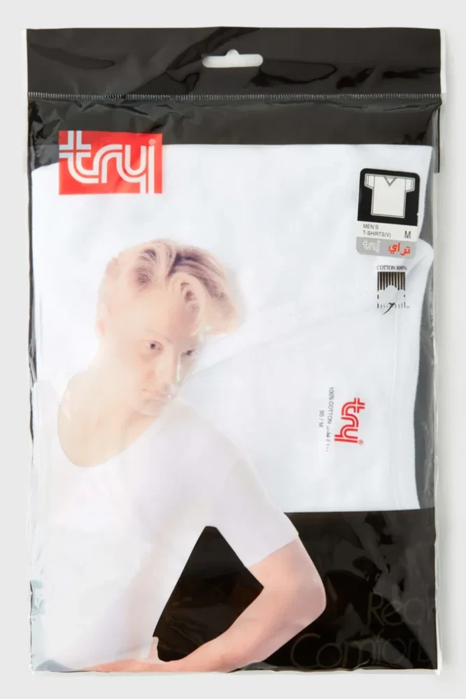قصة ياقة بشكل V وأكمام قصيرة باللون الأبيض، تي شيرت أساسية من الملابس الداخلية لكلّ رجل.مصنوعة 100% من القطن. تتخصّص علامة تراي بالملابس الداخلية الرجالية المصنوعة من أجود أنواع القطن الطبيعي. وهي تتمتع بخبرة أكثر من 50 عاماً في تقديم المنتجات المتطوّرة لعملائها. تراعي تراي الثقافة السعودية وتحظى بثقة جميع أفراد الأسرة السعودية، فتقدّم لهم الملابس الداخلية المريحة والمتنوّعة التي تلائم جميع الأذواق.