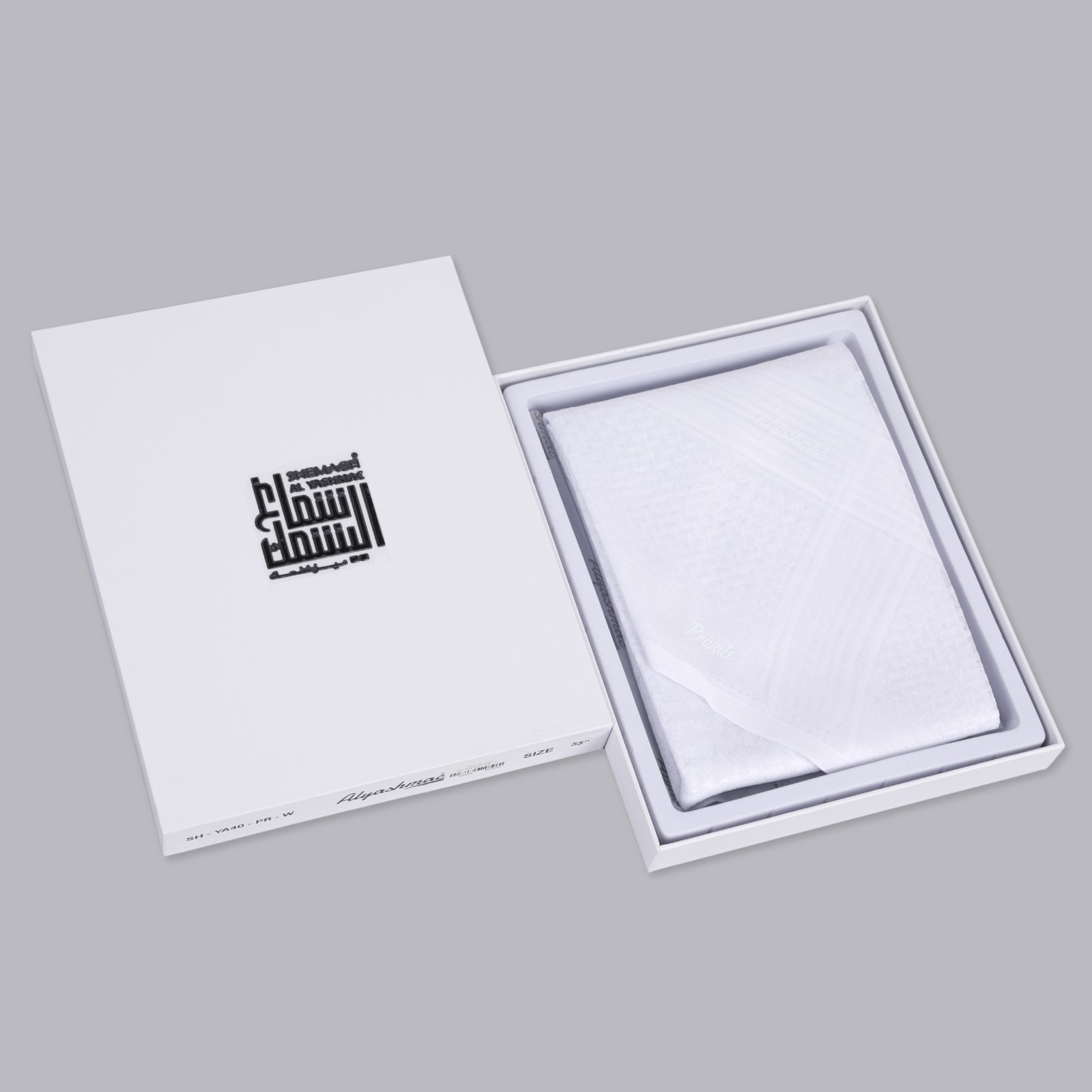 شماغ برايفت الأبيض من اليشمك الفخامة الفاخرة المميزة بتصميم وبصمة غير مكرره تحقق جميع ما يتمناه الرجل العربي مع معايير عالمية وجودة تحقق الطموحات المنشودة مع ضمان ذهبي على عدم تغير اللون بسبب العناصر و المكونات التي صنعت بكل فخر من القطن 100%.