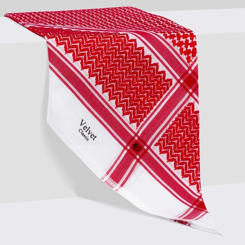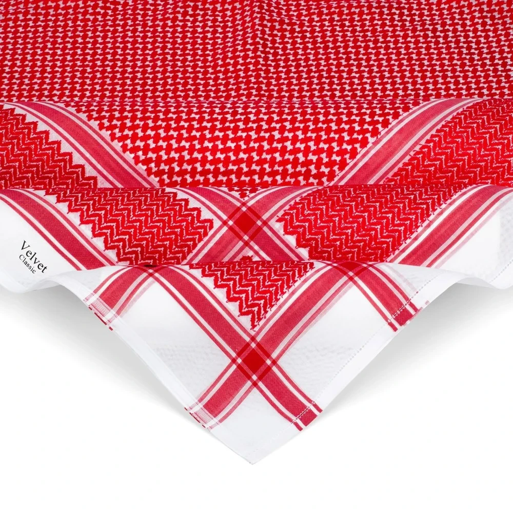 تم تصميمه من اجود انواع الاقمشة القطنية وبخامة فريدة من نوعها على يد ذوي الخبرة من اشهر المصممين الاوروبيين بطريقة وخياطة احترافية عالمية يجمع بين اللونين الاحمر والابيض حيث الالوان الاصيلة التي تحمل تراث الشماغ منذ قديم الزمن وتزيد من الشماغ اناقة وهيبة بالاضافة الى تماثل شكل الحواف وتطابق الاطراف بالميلي عند اللبس