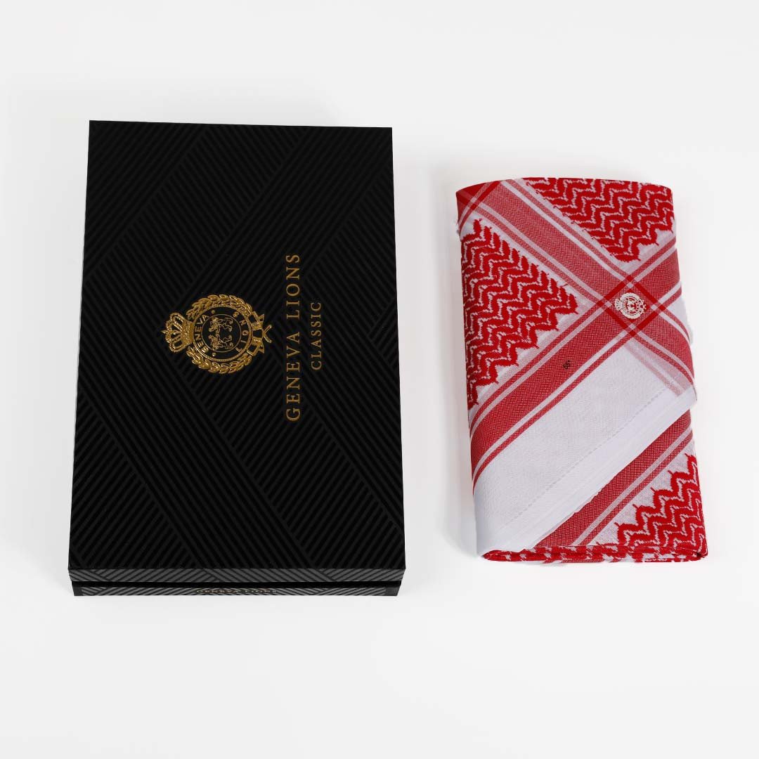 • شماغ جنيفا كلاسيك من ماركة جنيفا المشهورة والعالمية الغنيه عن التعريف باللونين الاحمر والابيض الأنيق والجذاب .