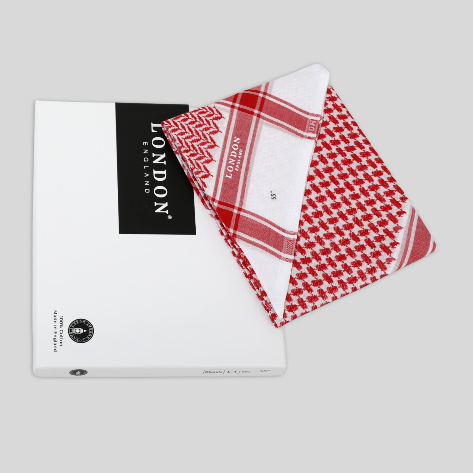 شماغ لندن إنجلترا أحمر كلاسيكي ،مصنوع من 100% قطن نقي ليضمن لك الراحة والنعومة. صُنع بعناية فائقة في إنجلترا لتوفير أعلى درجات الجودة والتميز. يتميز بثبات اللون، نسيج مريح، وحياكة متقنة تعكس الفخامة والتقاليد الأصيلة. خيار مثالي لإطلالة أنيقة.