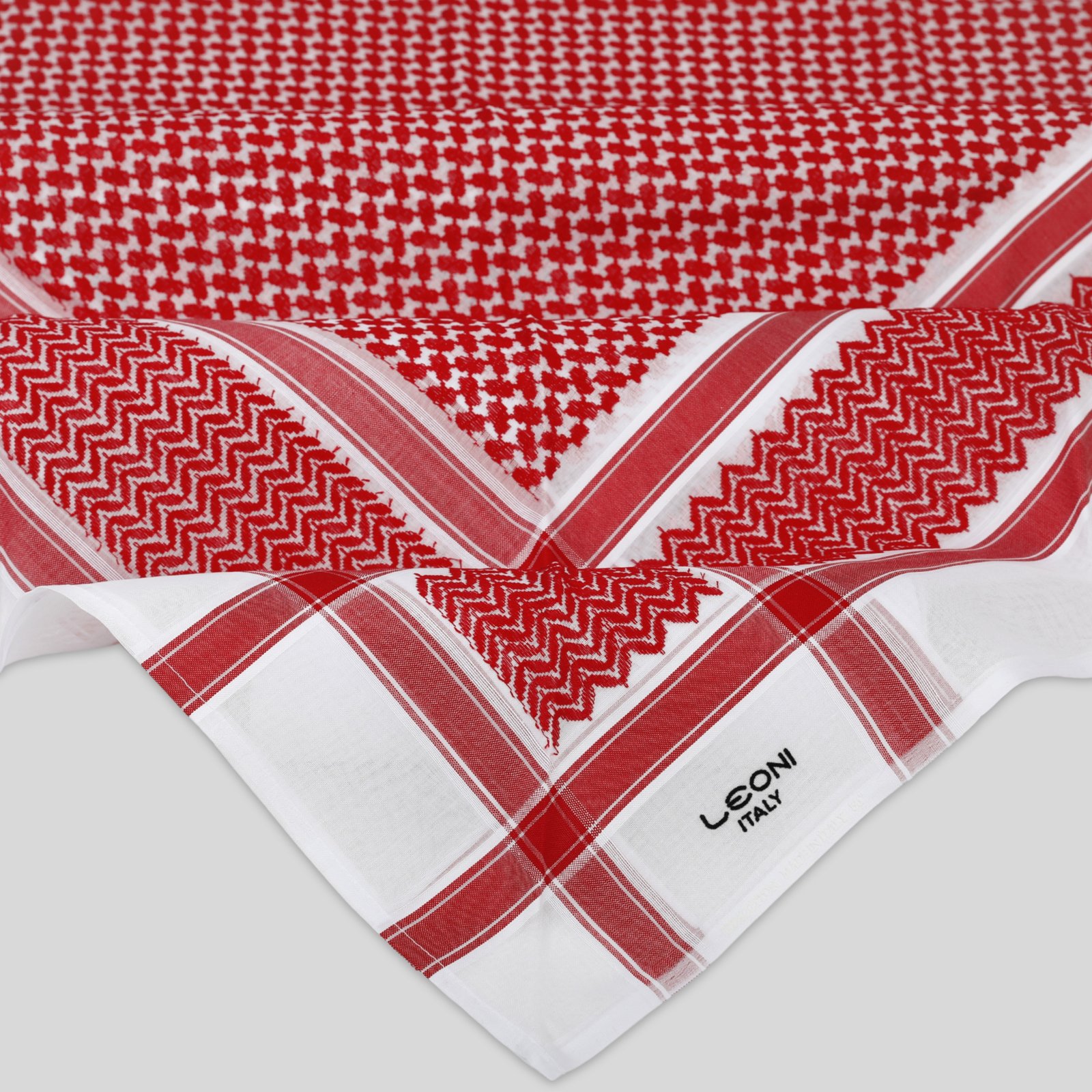 شماغ ليوني أحمر غامق ،مصنوع من 100% قطن نقي ليضمن لك الراحة والنعومة. صُنع بعناية فائقة في إيطاليا لتوفير أعلى درجات الجودة والتميز. يتميز بثبات اللون، نسيج مريح، وحياكة متقنة تعكس الفخامة والتقاليد الأصيلة. خيار مثالي لإطلالة أنيقة.