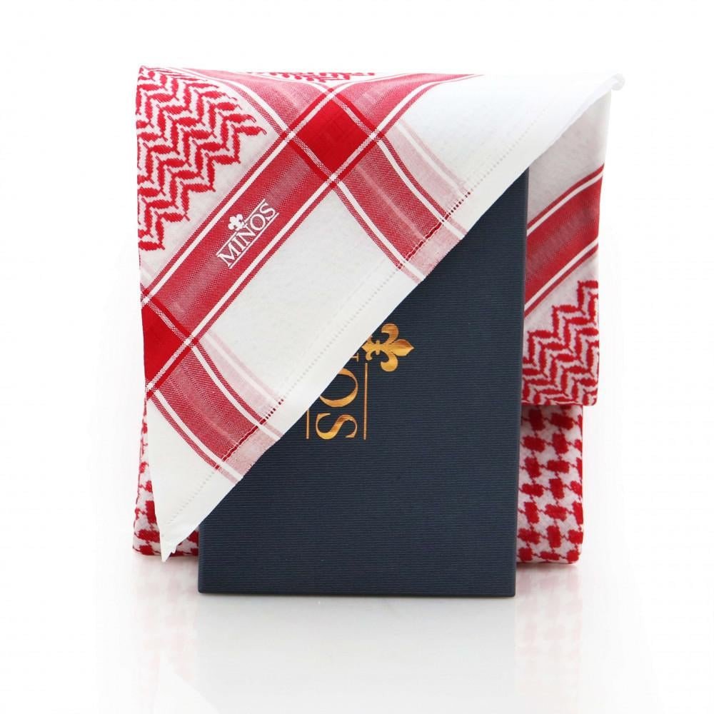 شماغ احمر مينوس Minos الاصدار MR-2 صنع من اجود انواع الخيوط متطابق الاطراف يتميز بثبات اللون ذو جودة عالية