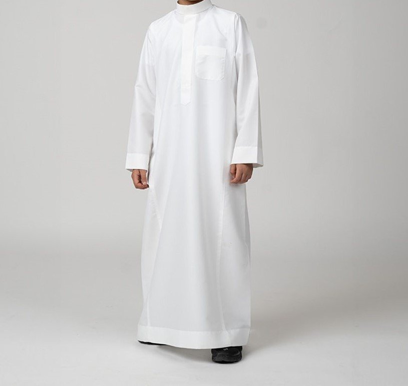 ثوب سعودي بأدق التفاصيل وأجود أنواع أقمشة الثياب، يأتي بمقاسات مدروسة بعناية ليمنح طفلك الثقة في الملبس والمظهر. الثوب يأتي بياقة منحنية مريحة وسحاب مخفي صممت لتعطي راحة أكبر عند اللبس، بالإضافة إلى جيب واحد علوي واثنين على الجوانب. الثوب من قماش بوليستر وملمس قطني وأكمام سادة مفصل بجودة ودقة عالية نتجت عن خبرات طويلة تجاوزت الثلاثين عاماً في صناعة الثياب
