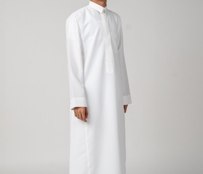 ثوب سعودي بأدق التفاصيل وأجود أنواع أقمشة الثياب، يأتي بمقاسات مدروسة بعناية ليمنح الشاب الثقة في الملبس والمظهر. الثوب يأتي بياقة قلاب مريحة وبسحاب، صممت لتعطي راحة أكبر عند اللبس، بالإضافة إلى جيب واحد علوي واثنين على الجوانب. الثوب من قماش بوليستر وملمس قطني وأكمام سادة مفصل بجودة ودقة عالية نتجت عن خبرات طويلة تجاوزت الثلاثين عاماً في صناعة الثياب